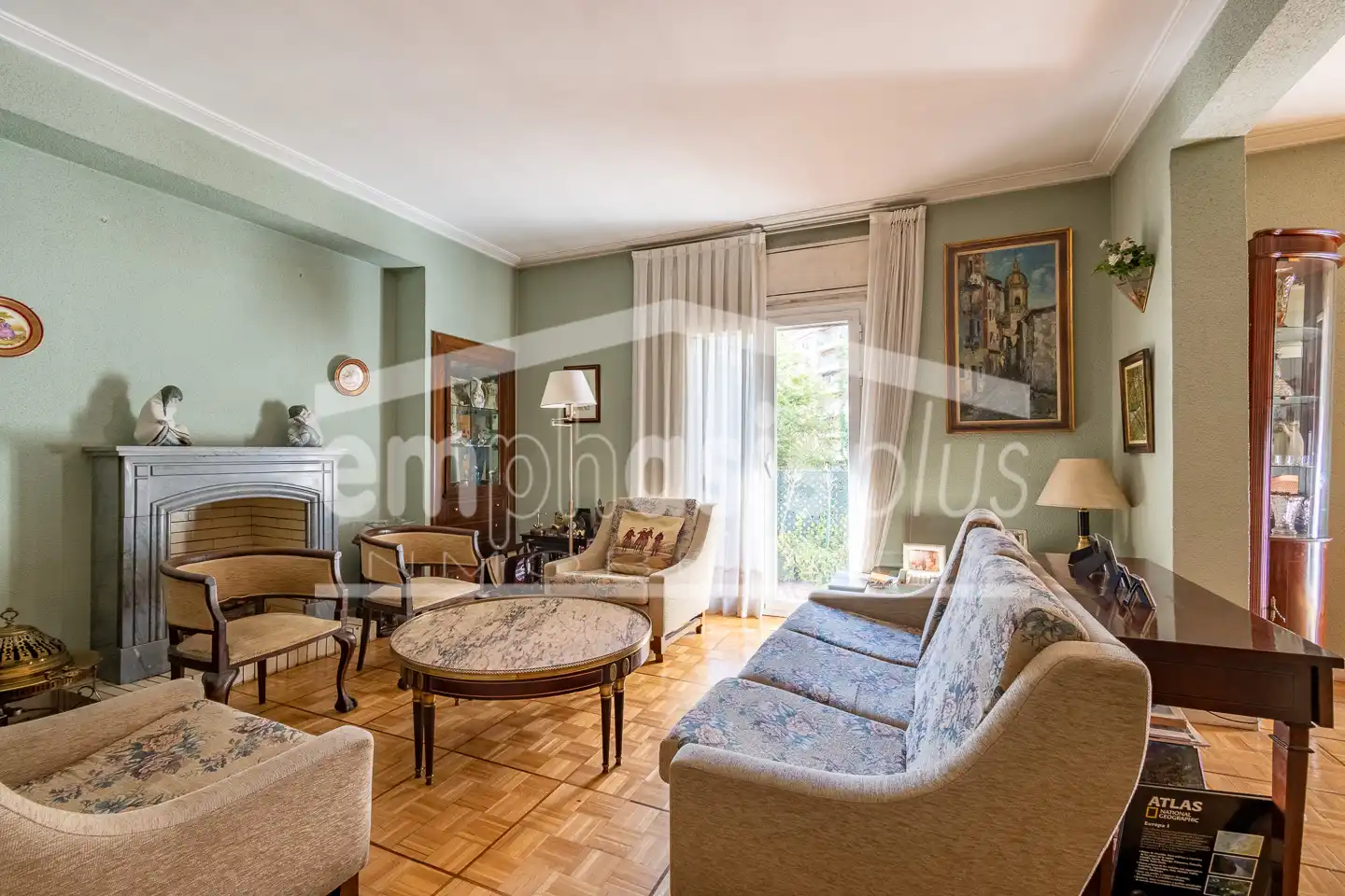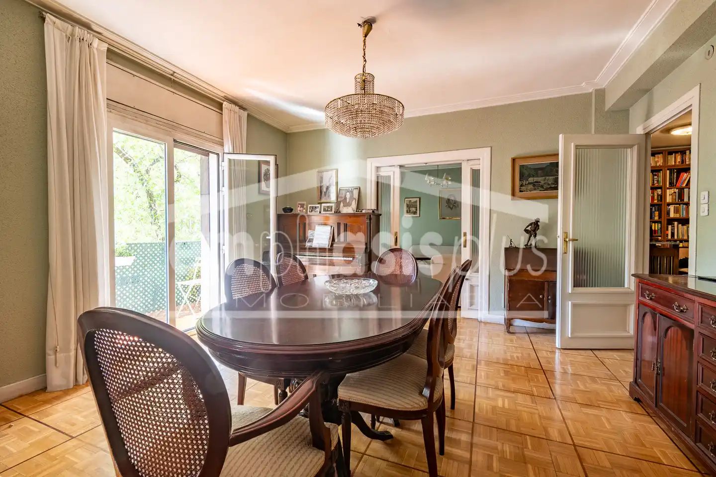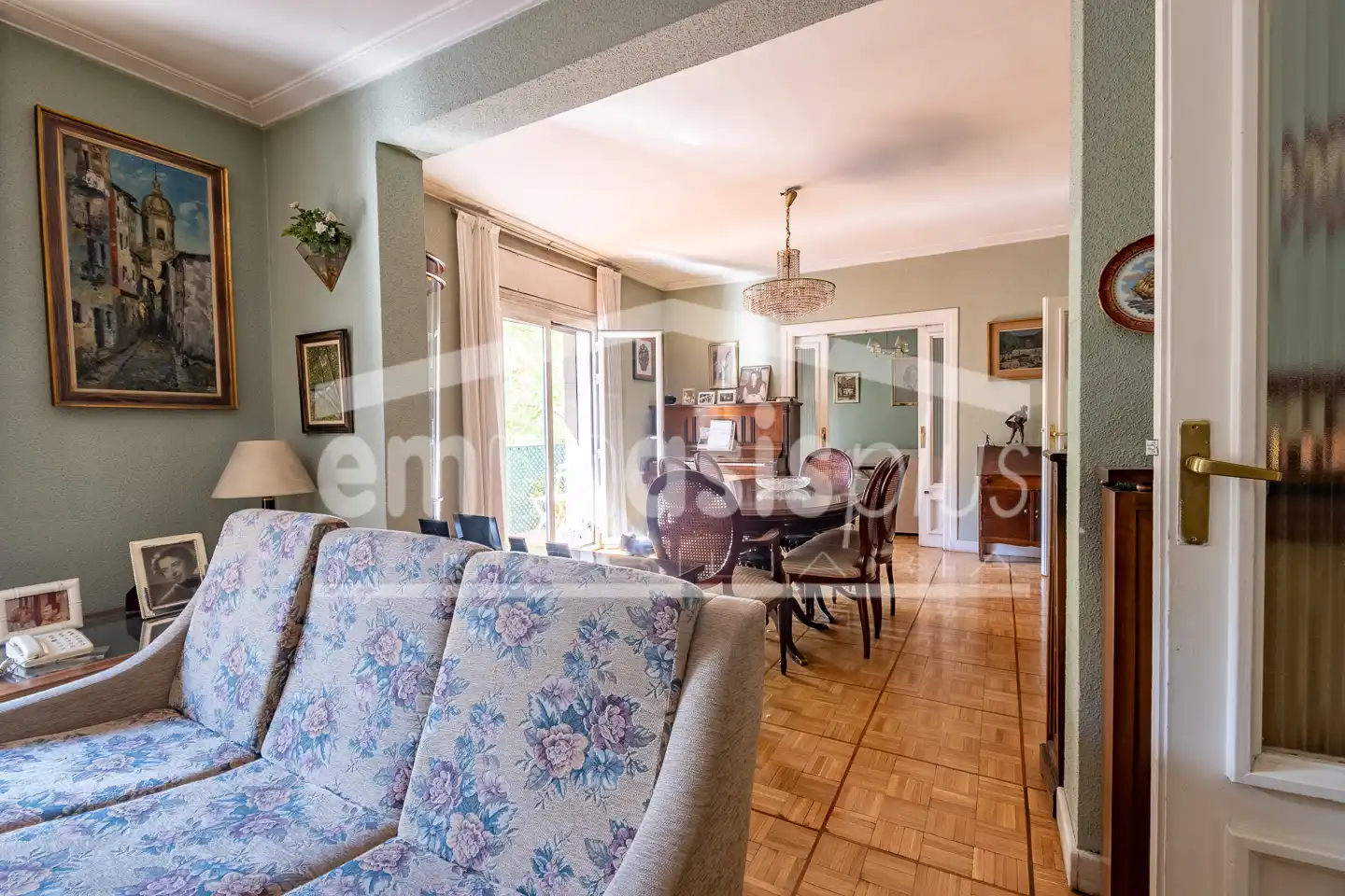 Actualmente la vivienda consta de hall de entrada, tres amplios salones con acceso a una terraza y a uno de los balcones.