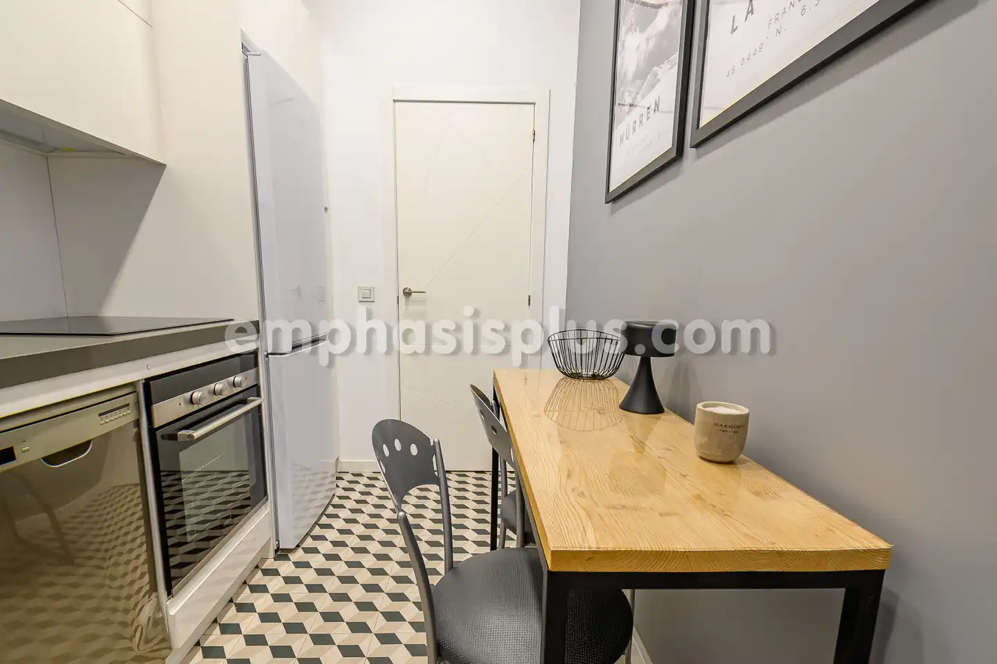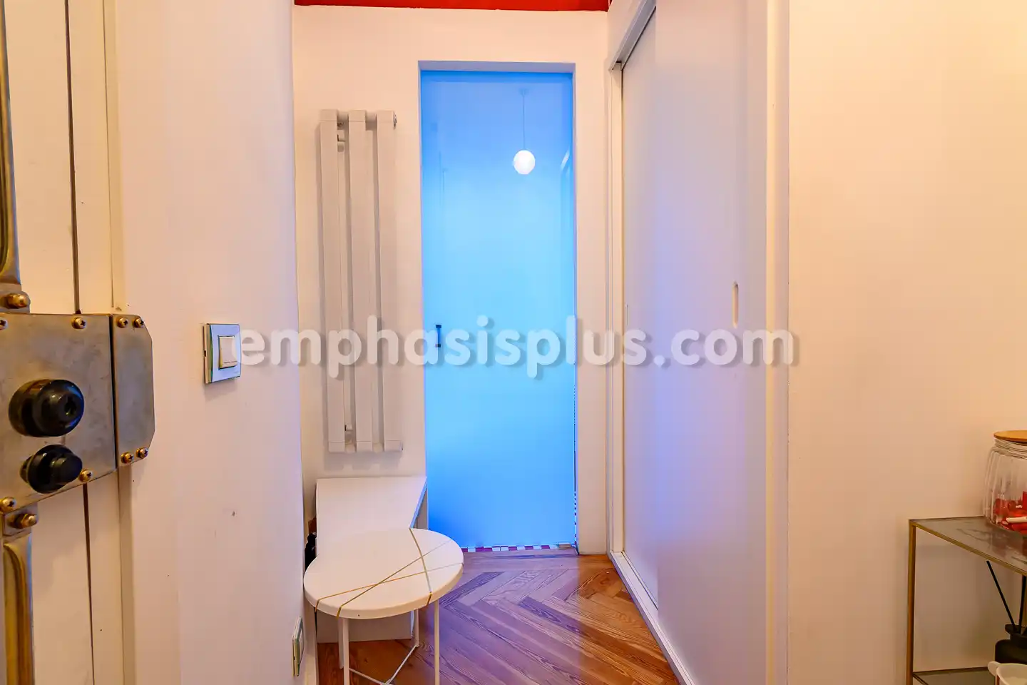 El piso de unos 90 m2 consta de hall de entrada con armario empotrado y aseo de invitados, espacioso salón comedor de unos 40 m2 con grandes ventanales (reforzados con doble acristalamiento para aislar del clima y del ruido), bonita cocina independiente equipada con electrodomésticos de primeras calidades (lavadora, lavavajillas, frigorífico, horno…) y dormitorio con baño en suite (con ducha independiente y bañera), vestidor con armarios de gran capacidad.